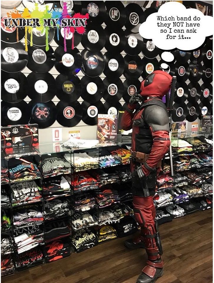 As you walk into our store inside Temple Mall the first thing you will see is an entire wall covered in vinyl records! This is our legendary "Rock Wall"; the largest & most extensive collection of licensed Rock Band T-shirts in central Texas! Our "Rock Wall" currently features 100 different bands from Classic Rock & Metal, Punk, Pop, Pop-Rock, and Modern Rock & Metal. And we always have multiple designs for each band in stock in sizes small through 2XL!